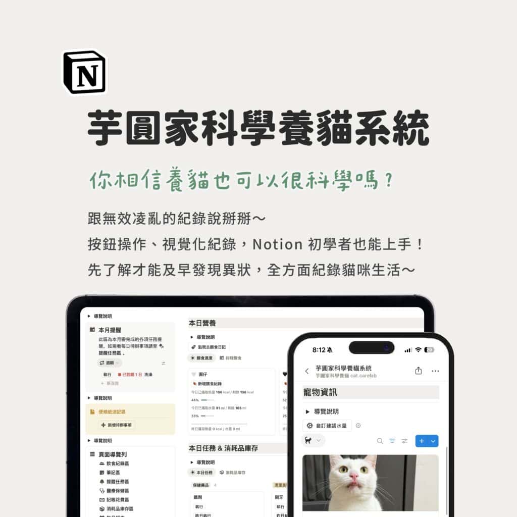 【貓奴必備】芋圓家科學養貓Notion系統!全方位紀錄貓咪日常飲食醫療