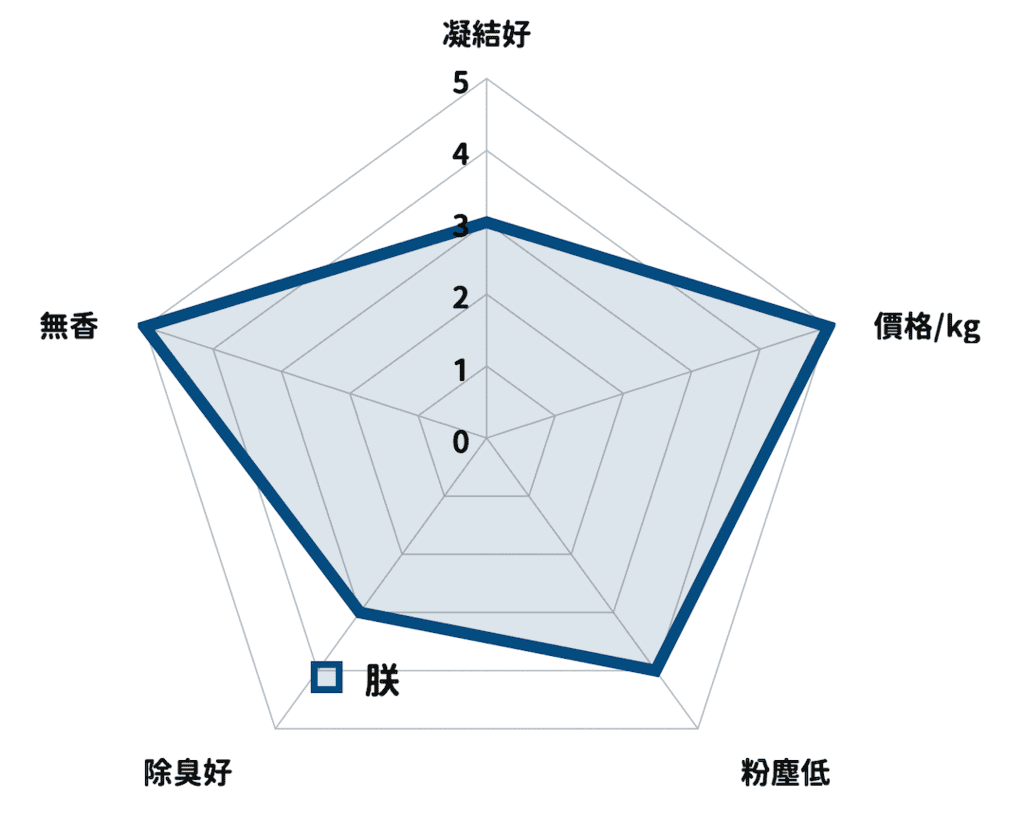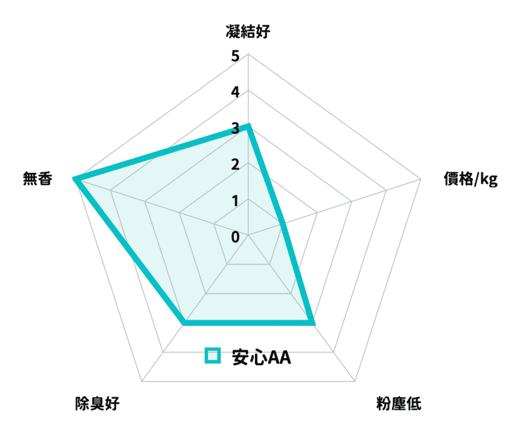 這兩個其實是息息相關的,如果結團力差,排泄物容易碎掉或黏底,難清理也容易藏味、發臭。凝結越緊實,越能完整包住尿液與氣味,自然也就不容易臭。這對多貓家庭或夏天潮濕環境特別重要。