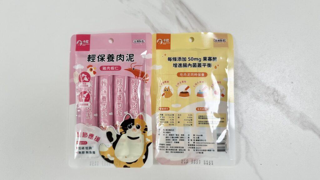 卡尼輕肉泥主打低磷低鈉且營養標示都是通過檢驗得到,官網也有放檢驗報告很公開透明。不同口味添加不同的保健品,當日常保養,像是純雞肉添加果寡糖顧腸胃!也是很值得推薦的台灣在地品牌~