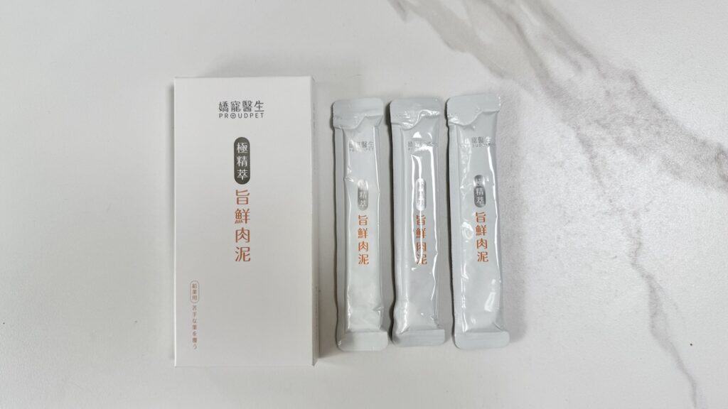 這款肉泥是在台北愛貓園寵物店發現的,蝦皮上也有賣家在販售。主打無添加,每種口味都是使用天然米粉取代增稠劑,要注意沛瑞的機能系列是有添加增稠劑的,包裝底色是深色,不要選錯款囉!
